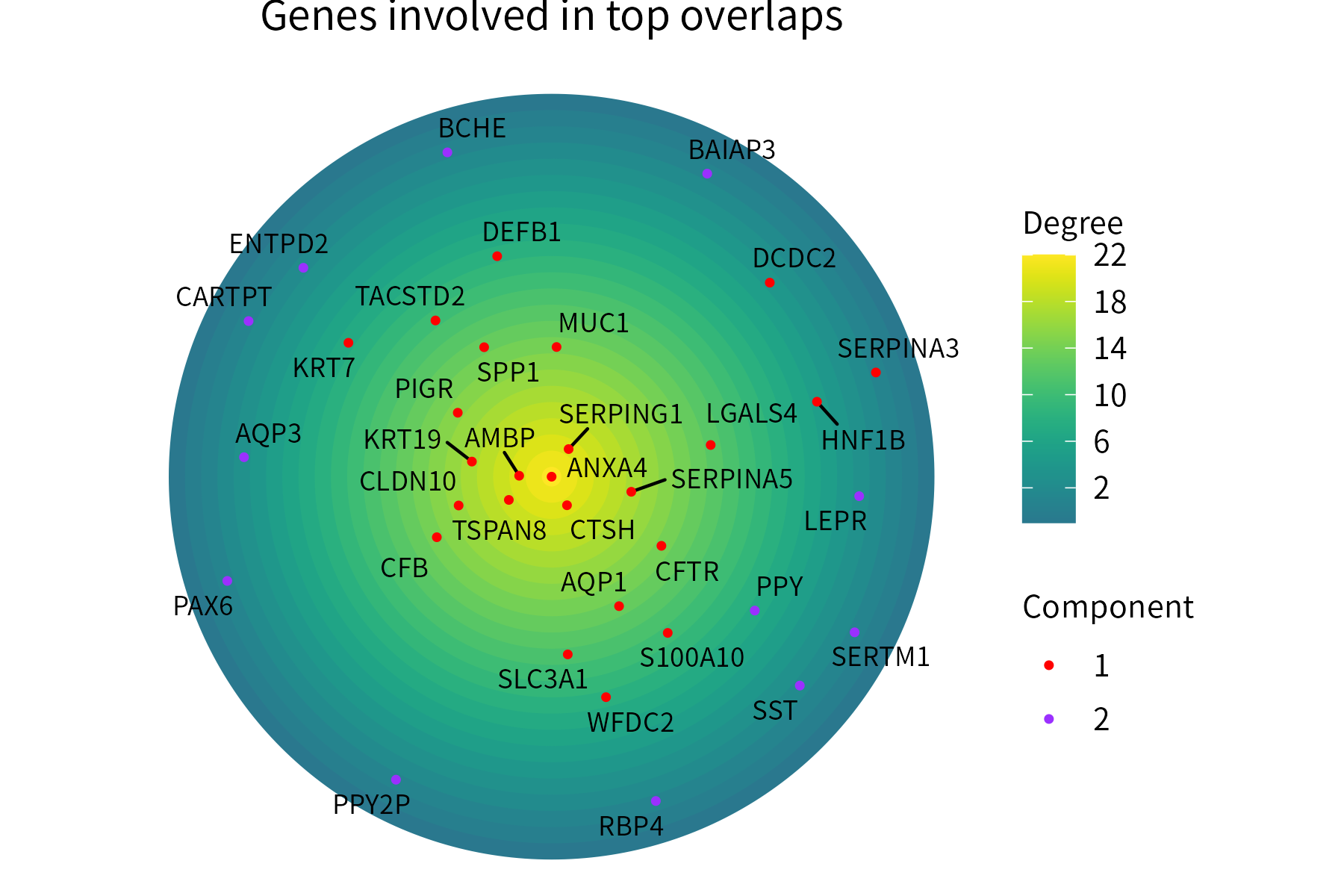 This function plots positive numeric-valued points over concentric circles, with points located more centrally representing higher values. Optionally, the points can be assigned to groups and colored on the basis of thes groups.