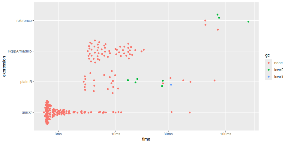 "reference", "RcppArmadillo", "plain R", "quickr"