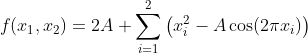 where xi ∈ [−5.12, 5.12] and A = 10. It has many local minima and its global minimum is at (0, 0) with the minimum value 0.