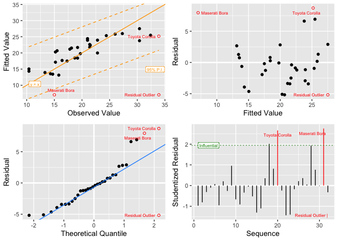#> F-Statistic = 25.431 Adj-R2 = 0.61183 MAD = 2.6984