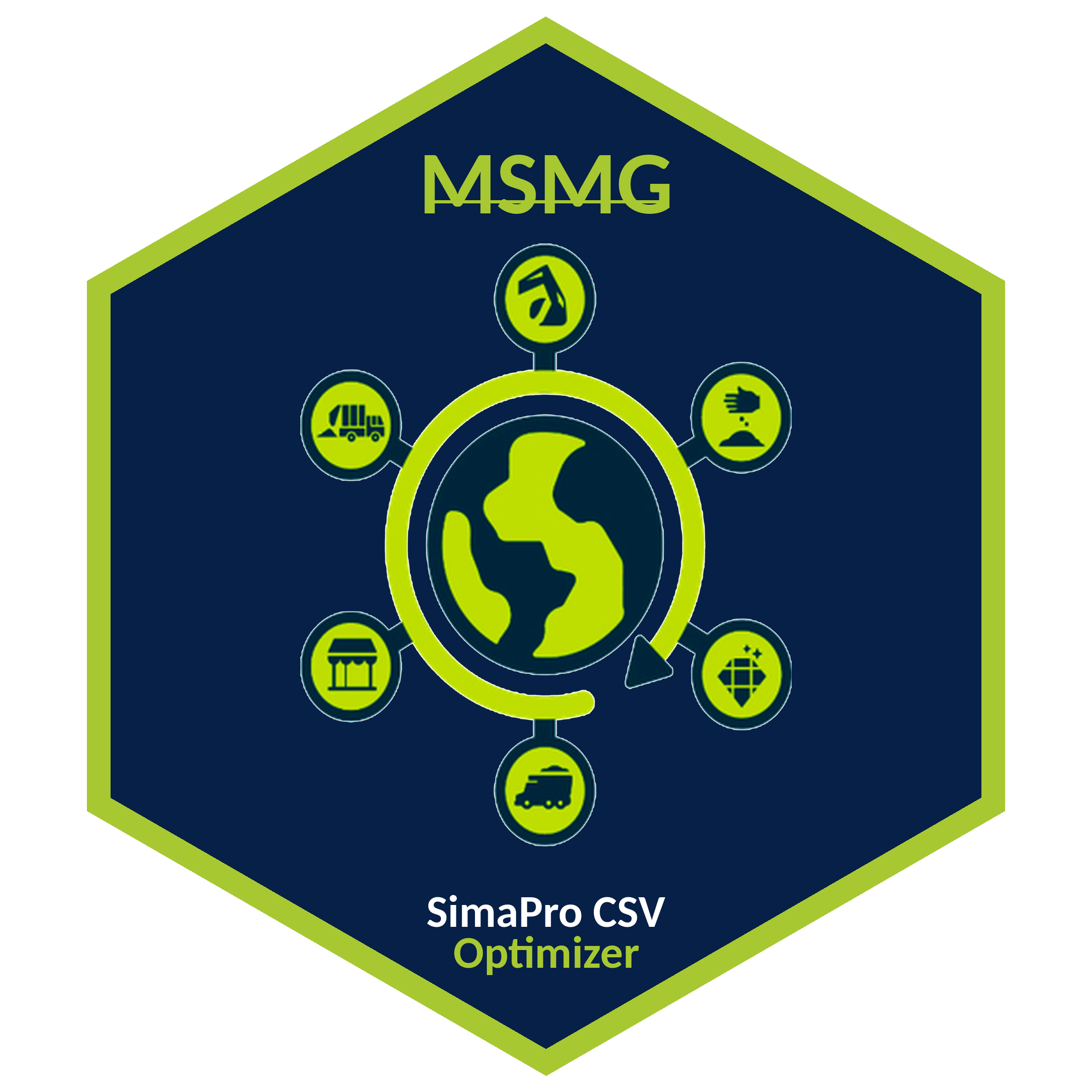 MSMGOptimizer is an R package that transforms raw Life Cycle Inventory (LCI) data from Excel into a fully compatible CSV format for seamless import into SimaPro — one of the world’s leading Life Cycle Assessment (LCA) software platforms.