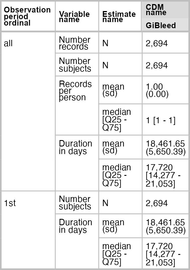 <- summariseObservationPeriod(observationPeriod = cdm$observation_period)