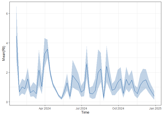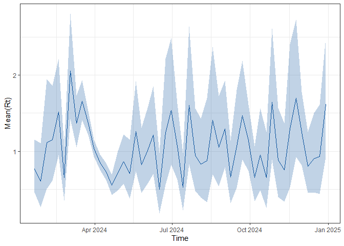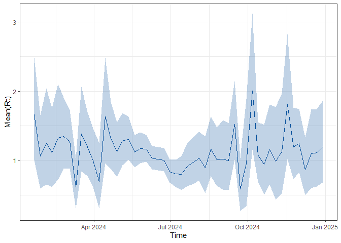 #> # ℹ 356 more rowsThe code below estimates the reproduction number using