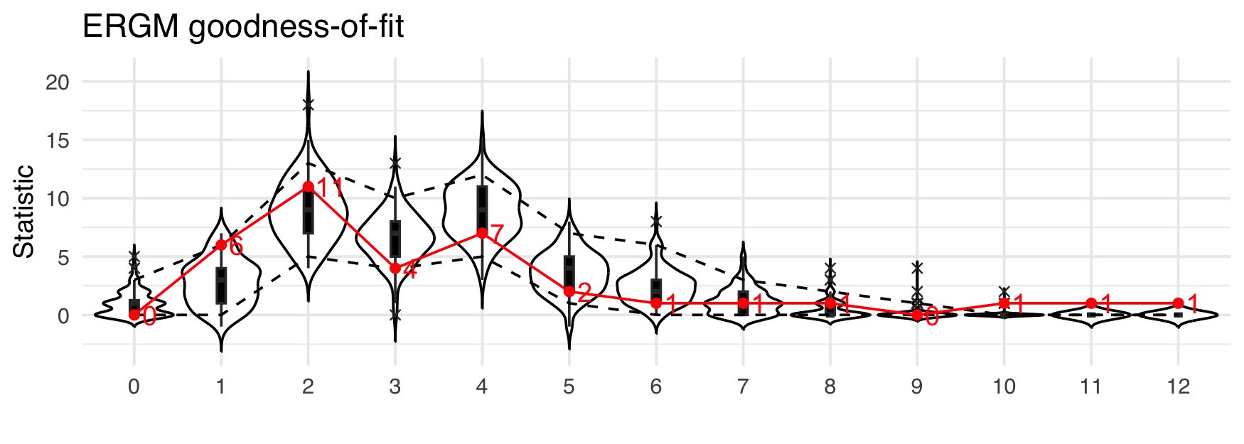some examples, using goodness-of-fit results from fitting a SAOM in