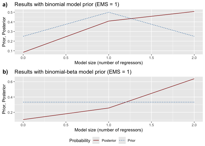 #> Prior model size Posterior model size