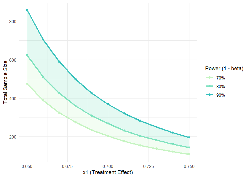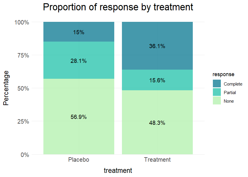 title = "Proportion of response by treatment", values = TRUE)