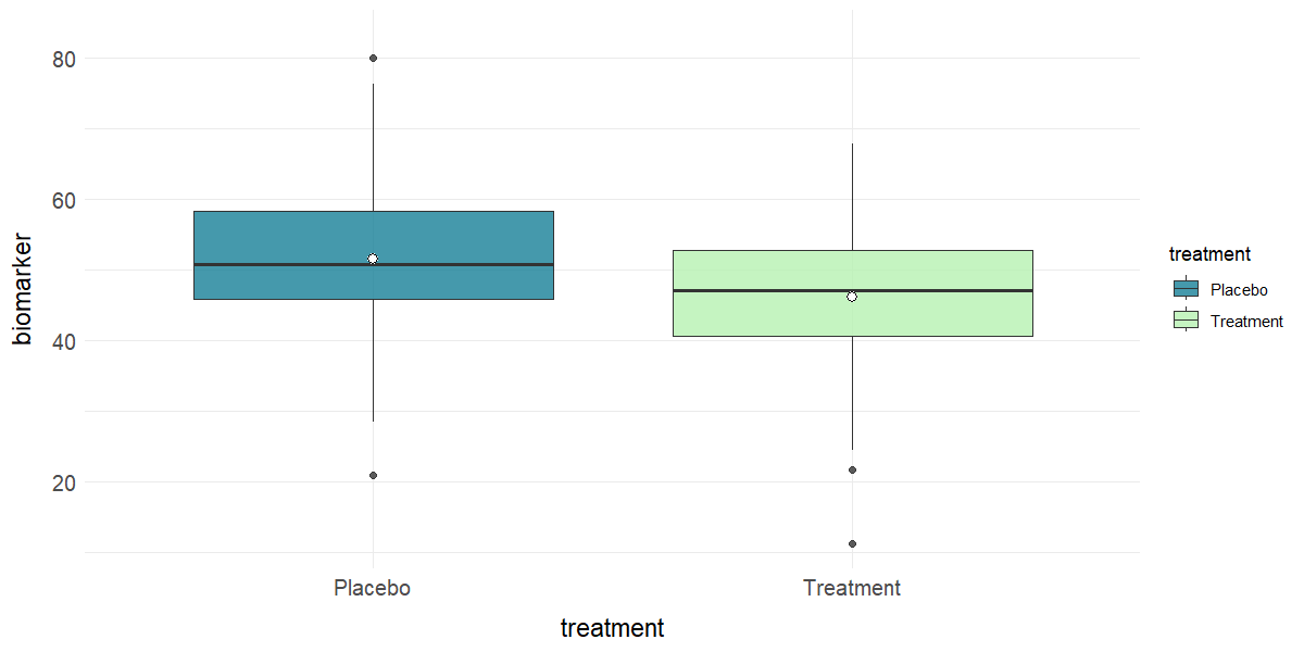 plot_box(clinical_df, x = "treatment", y = "biomarker", group = "treatment")