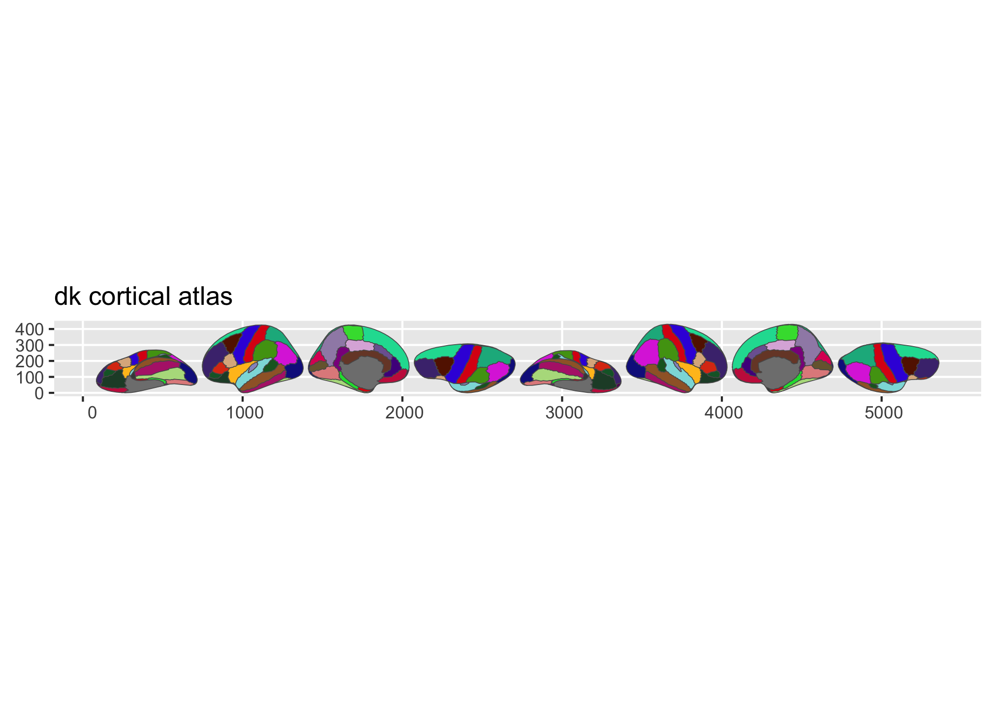 library(ggplot2)ggseg ships with three atlases: dk (Desikan-Killiany