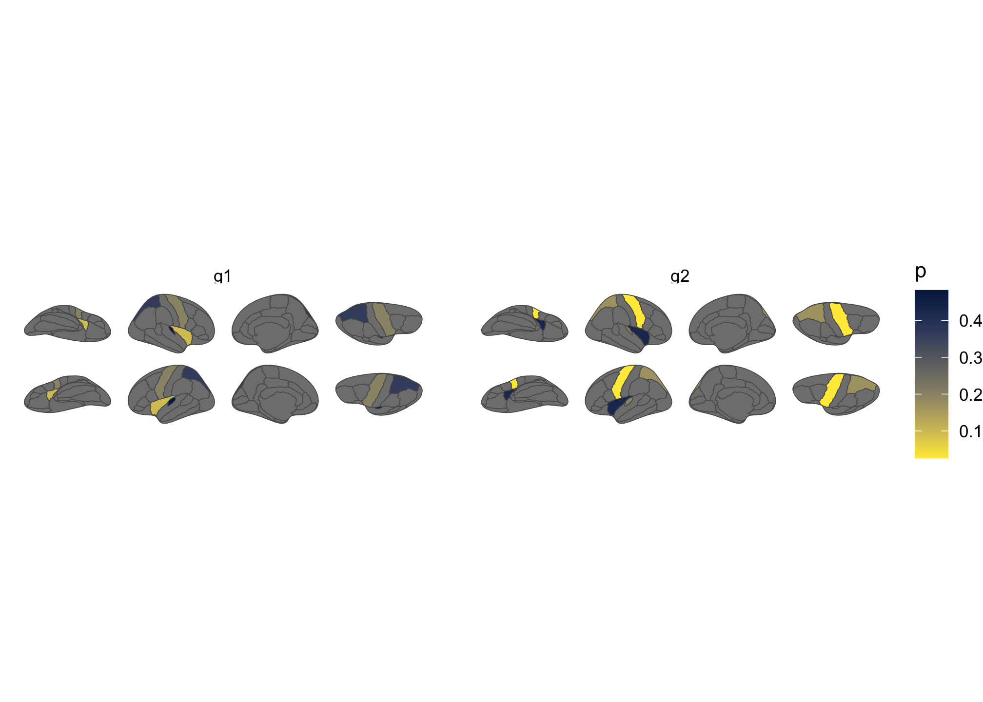 Figure 3: Brain plot coloured by external data, faceted by group.
