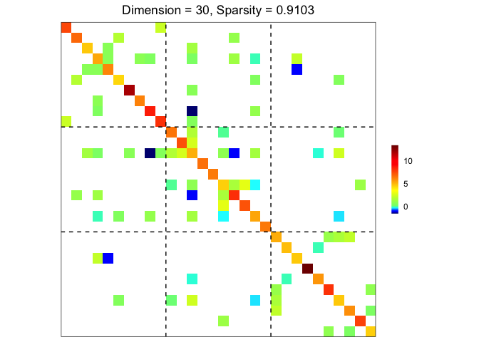 sim <- gen_prec_sbm(d = 30, K = 3,