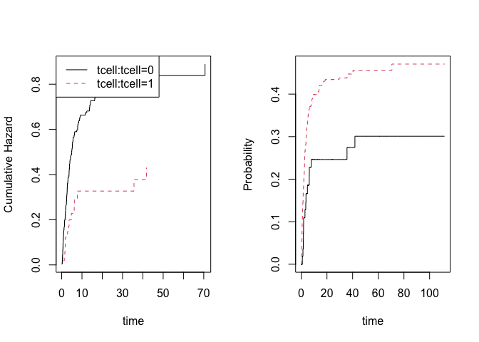 #> [6,] -0.001404170 0.0009471848or the the restricted mean survival or years-lost to cause 1