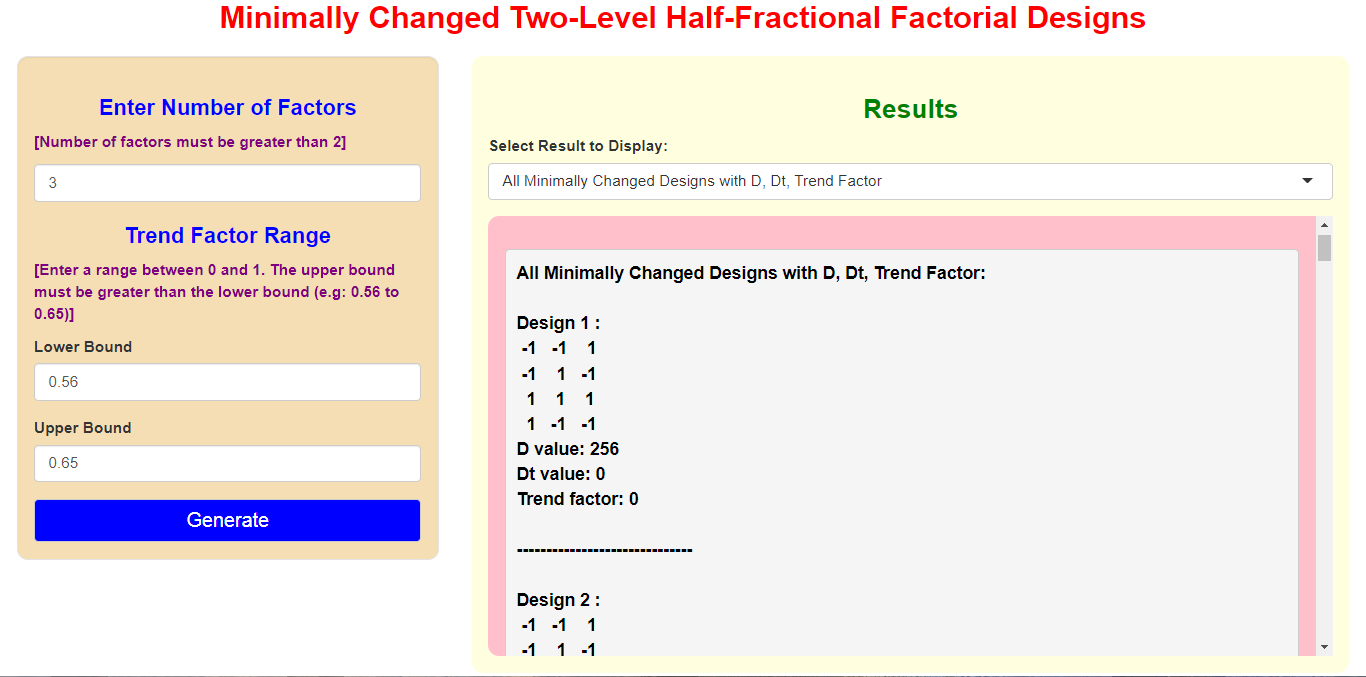 Designs with the Maximum D-value within the generated minimally changed