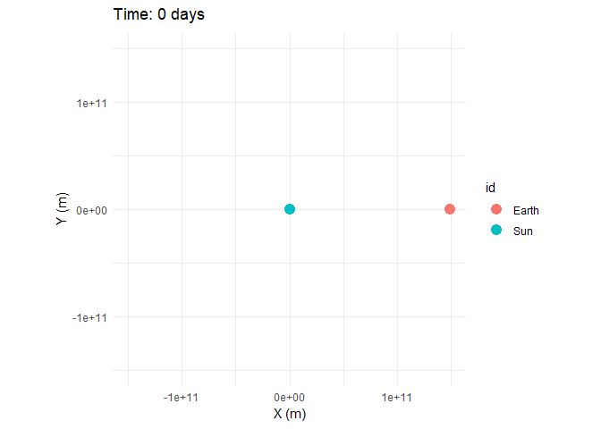 add_body("Earth", mass = mass_earth, x = distance_earth_sun, vy = speed_earth) |>