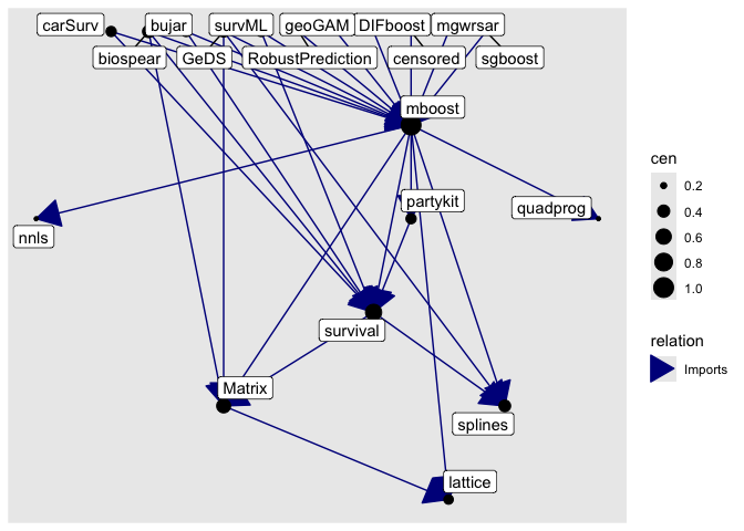 get_neighborhood("mboost", level = 1, relation = "Imports") |> as_graph() |> plot()