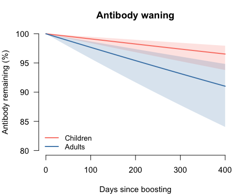 Antibody boosting and waning rates | Biological response, may be shared across groups |