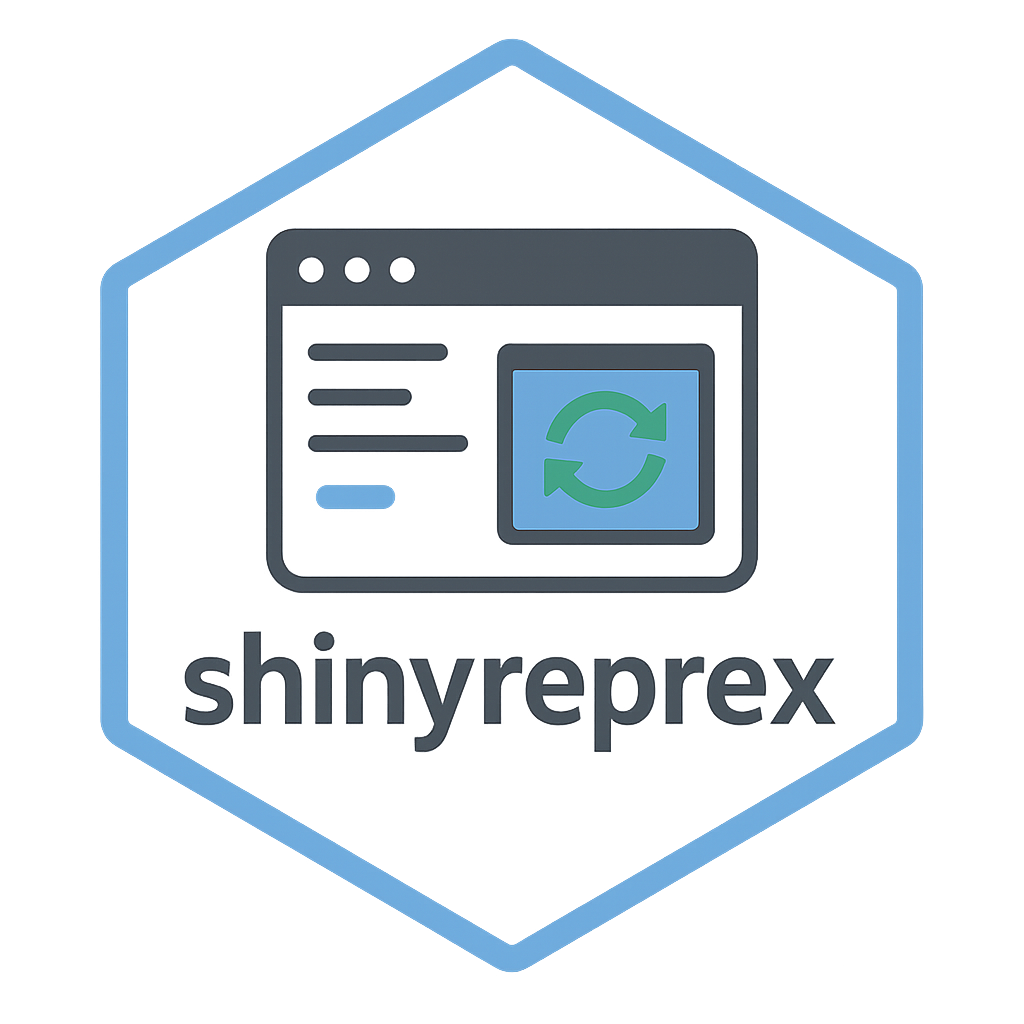 The aim of shinyreprex is to be able to recreate any reactive or output that is available in a Shiny application outside of said application.