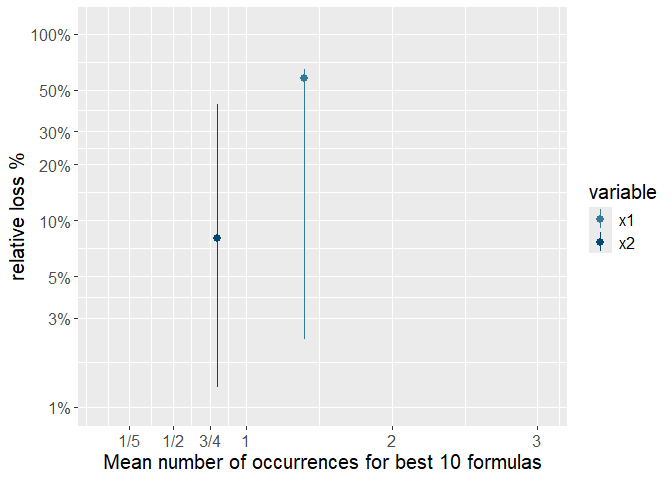 labs(x = paste0("Mean number of occurrences for best ",n.formulas," formulas"), y = "relative loss %") +